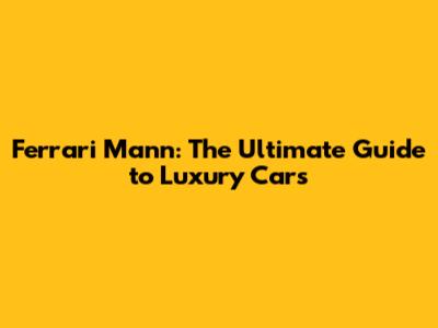 Ferrari Mann: The Ultimate Guide To Luxury Cars