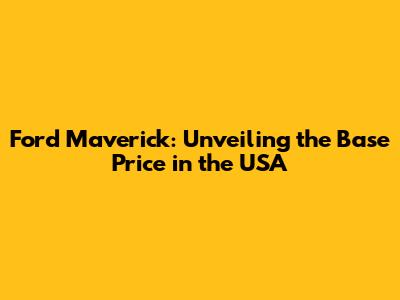 Ford Maverick: Unveiling The Base Price In The USA