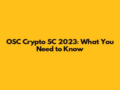 OSC Crypto SC 2023: What You Need To Know