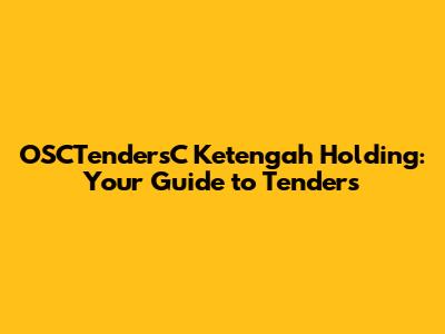 OSCTendersC Ketengah Holding: Your Guide To Tenders