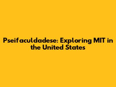 Pseifaculdadese: MIT In The United States?