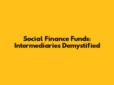 Social Finance Funds: Intermediaries Demystified