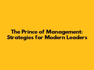 The Prince Of Management: Strategies For Modern Leaders