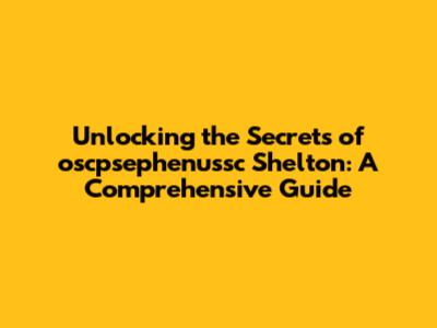 Unlocking The Secrets Of Oscpsephenussc Shelton: A Comprehensive Guide