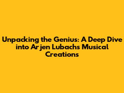 Unpacking The Genius: A Deep Dive Into Arjen Lubach's Musical Creations