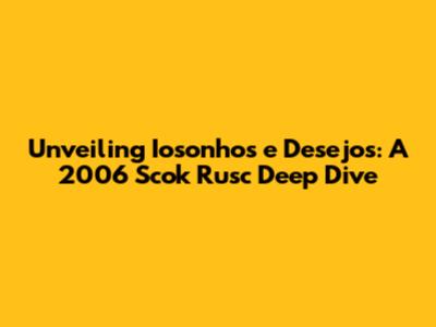 Unveiling 'Iosonhos E Desejos': A 2006 Scok Rusc Deep Dive