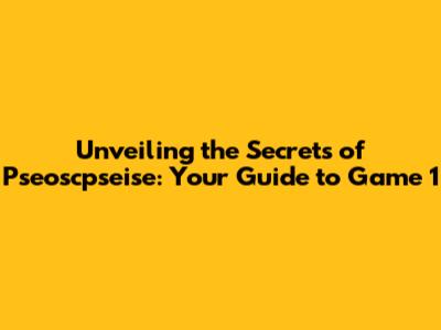 Unlocking the Secrets of Pseoscpseise Game 1